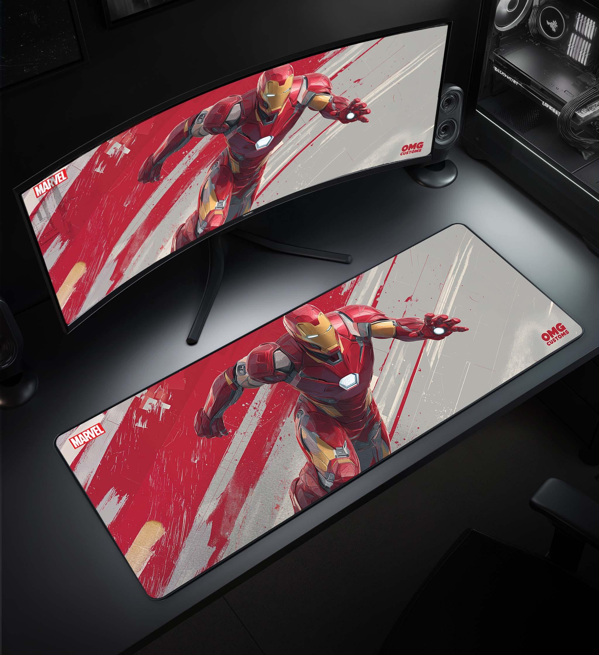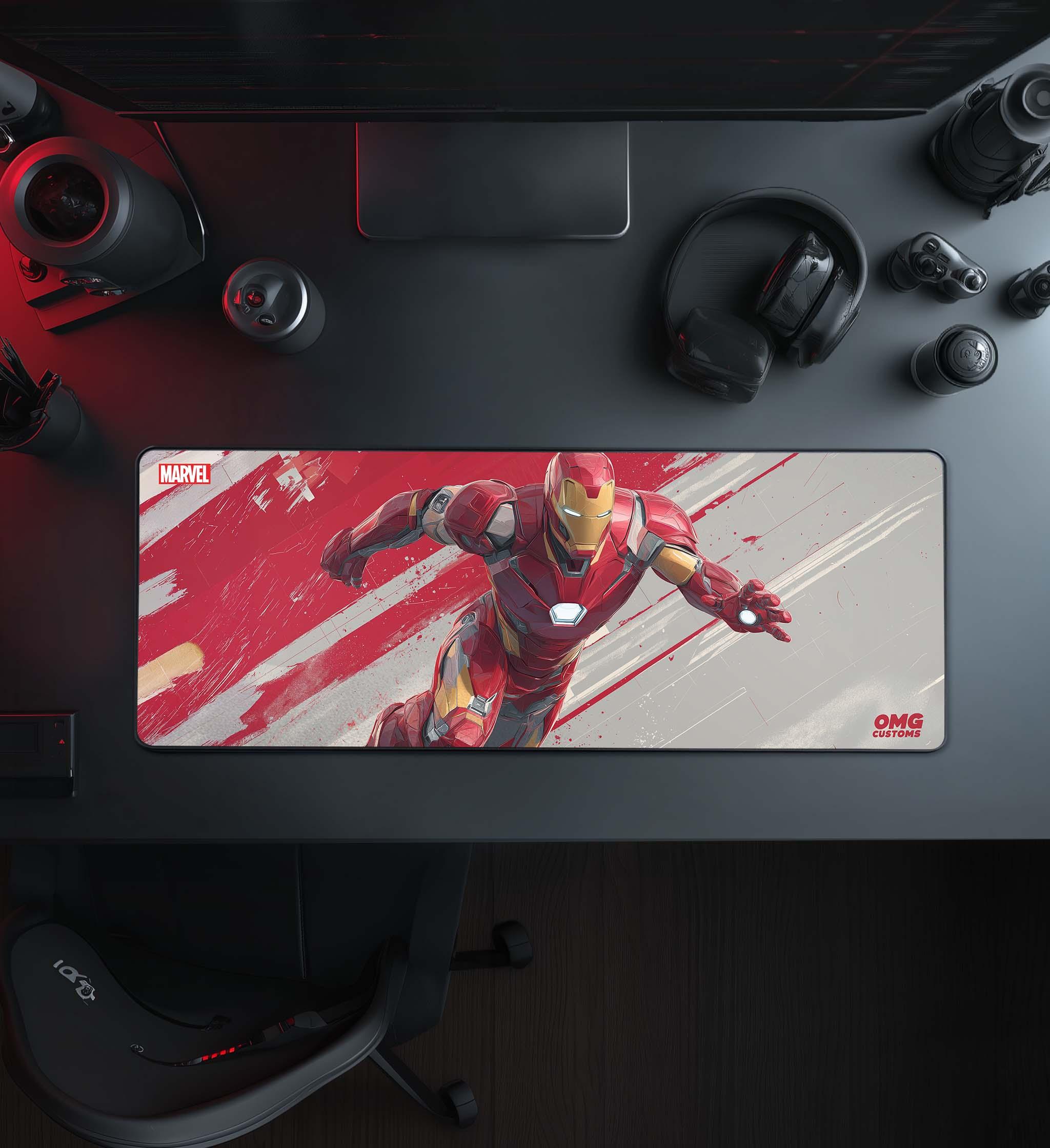 The vivid red-and-gold vector artwork captures Iron Man mid-flight, surrounded by streaks of power that symbolize speed, confidence, and evolution. It’s a perfect centerpiece for gamers, creators, and tech lovers who live by Stark’s mantra: work smarter, move faster, and always look sharp.
