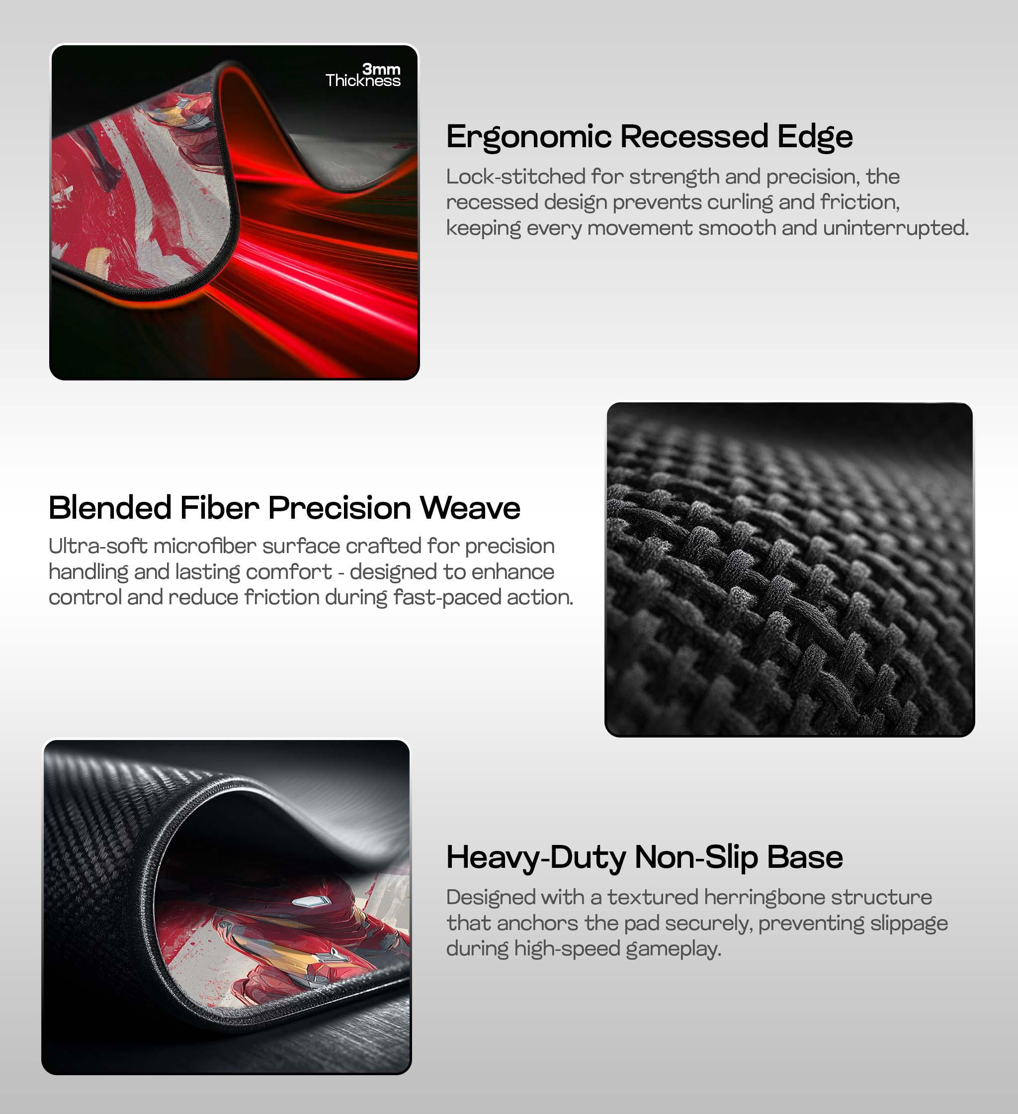 Crafted for both speed and control, the micro-textured surface gives you unmatched accuracy, while reinforced anti-fray edges and a durable non-slip rubber base ensure your performance stays rock steady — no matter the mission.