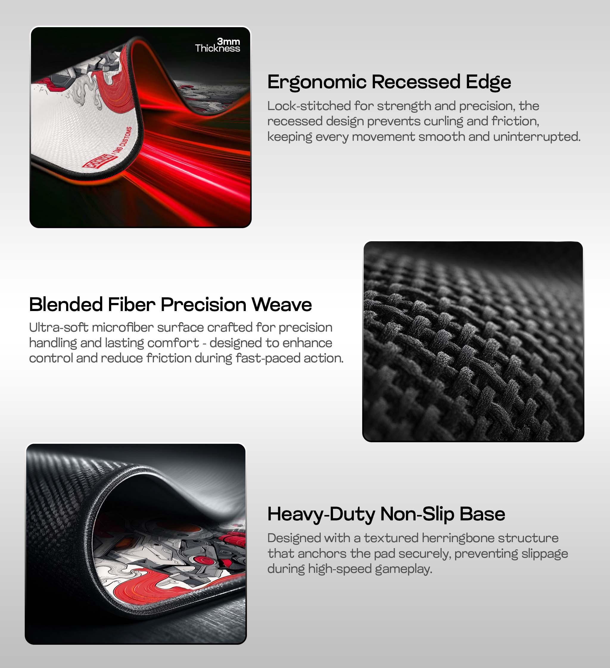 Built to perform as fiercely as it looks, the micro-textured surface ensures unmatched tracking accuracy, while the anti-fray stitching and non-slip rubber base provide rock-solid reliability through every move, mission, or match.