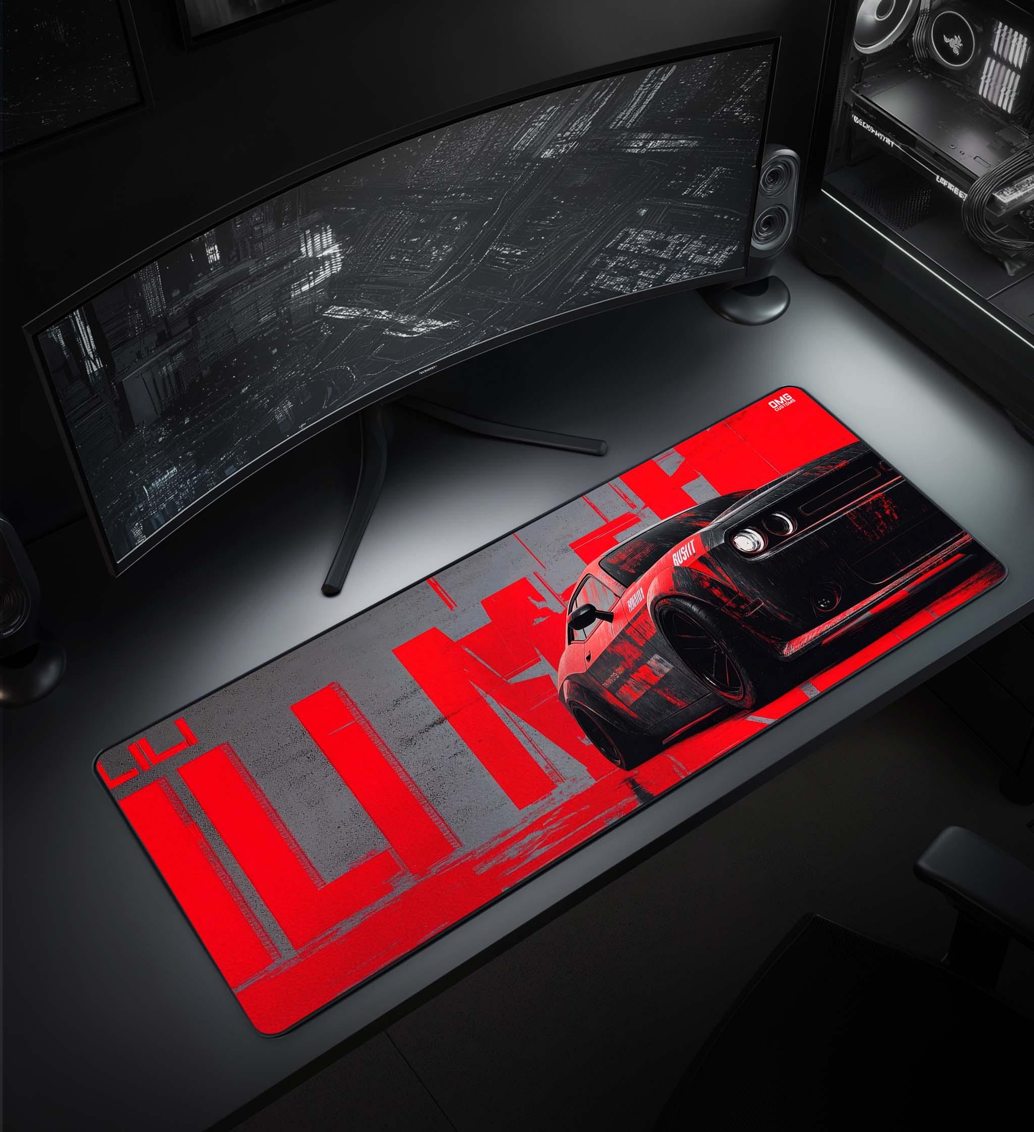 This artwork is about dominance through stillness. About knowing you don’t need to prove speed when power is obvious. The car faces forward with quiet menace, pulling your focus toward the right edge of the desk — forward, always forward. The panoramic layout turns your setup into a controlled arena of tension and resolve.
