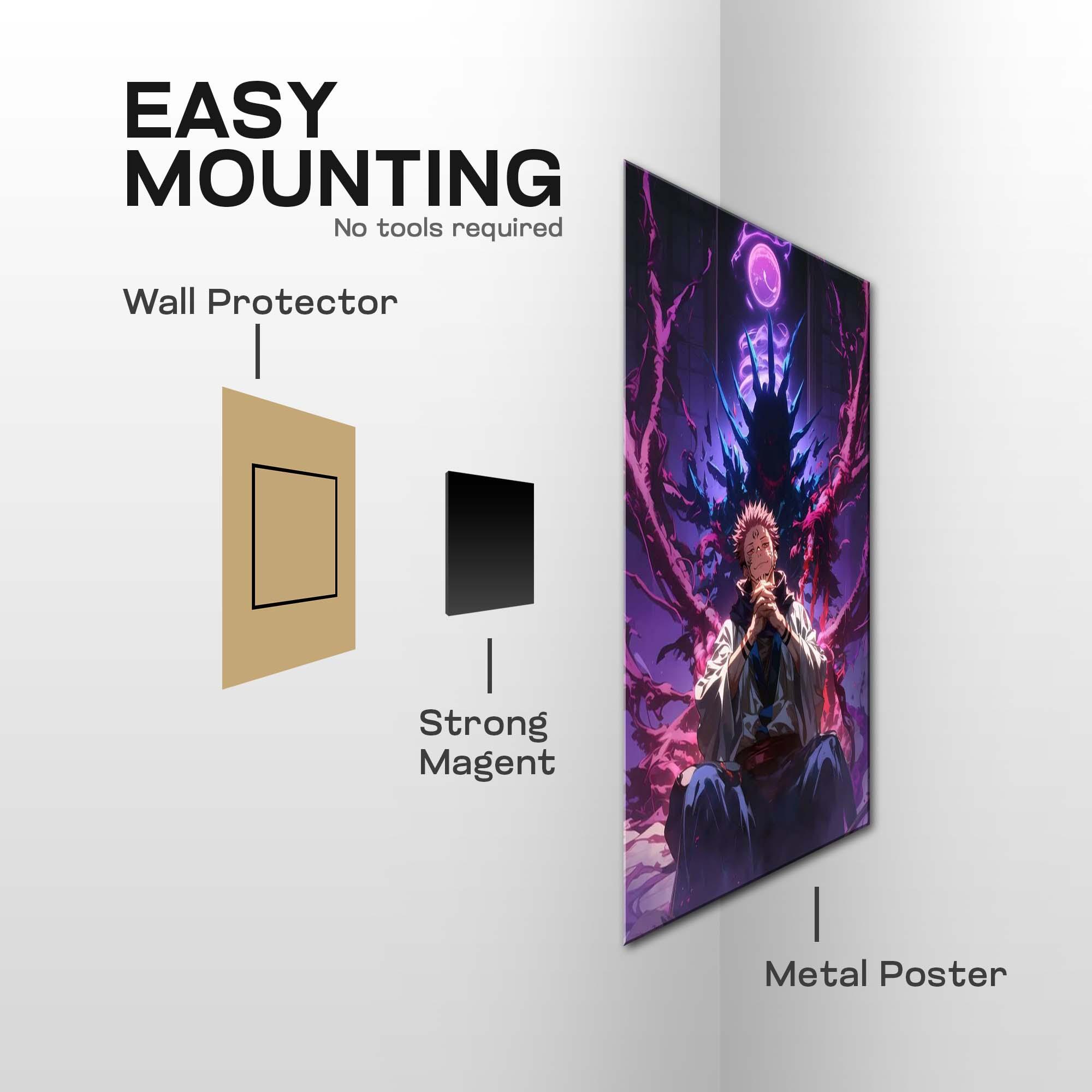 Printed on premium metal, the poster offers razor-sharp clarity, vivid saturation, and a smooth matte finish that enhances the dramatic lighting and cursed energy effects. A must-have for Jujutsu Kaisen fans, dark-fantasy art lovers, and collectors seeking powerful, story-rich visuals.