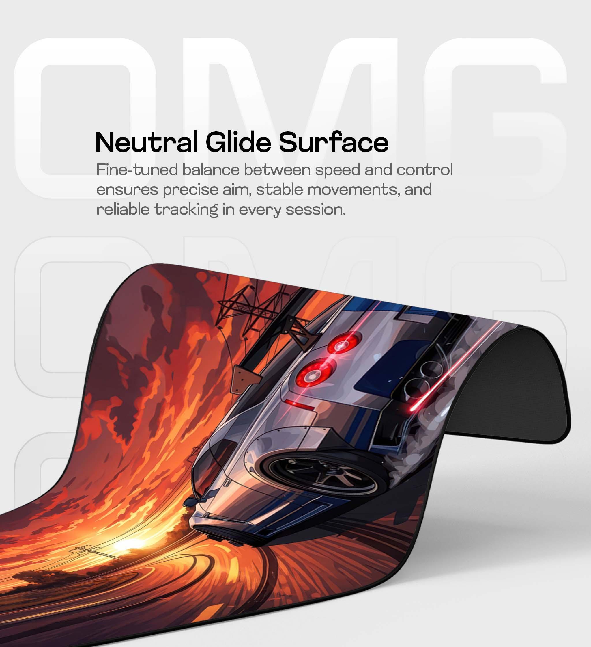 Designed for those who live for the fast lane, every detail screams passion and performance. From its high-resolution artwork to its micro-textured glide surface, this is not just a mousepad — it’s your driver’s seat in the world of control.