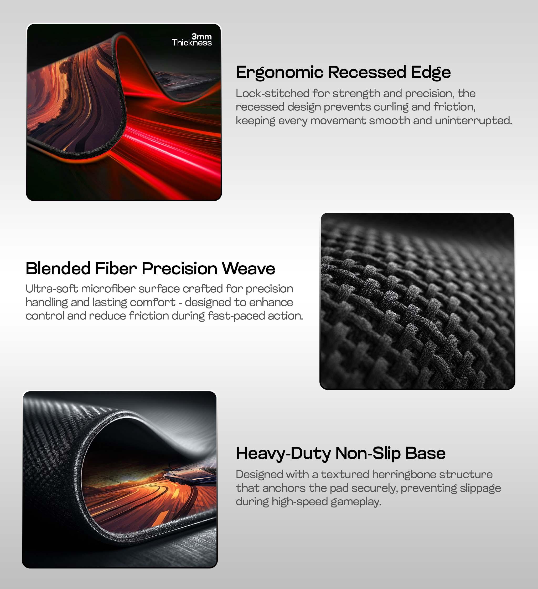 The vivid blend of orange skies and motion trails immerses you in a cinematic moment of drift perfection — where art meets adrenaline. Whether you’re gaming, designing, or working, this pad is your asphalt of focus — sleek, smooth, and built for precision.